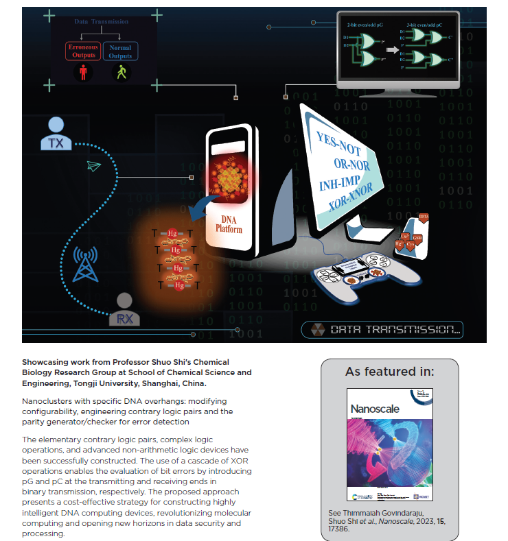 1. Mohamed Nabeel Mattath, Haibin Zhang, Debasis Ghosh, Thimmaiah Govindaraju,* and Shuo Shi*Nanoclusters with Specific DNA-Overhangs: Modifying Configurability, Engineering Contrary Logic Pairs and Parity Generator/Checker for Error Detection.